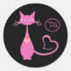 Classic Retro Pink Kitty Cat Heart Tail Monogram Classic Round Sticker