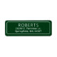 Classic white on dark green return address labels featuring a clean sans serif font for a traditional feel.