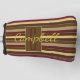 A classic striped pattern in rich brown, gold and maroon with a personalized monogram.