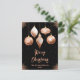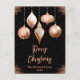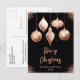 Send warm holiday wishes with this sophisticated Christmas postcard featuring five elegant ornaments in rose gold tones. Each ornament showcases a unique design - floral, snowflake, dripping faux glitter, diamond pattern, and stars - against a rich black background with rose gold sparkles. The luxurious palette and refined layout make this card ideal for stylish families, formal greetings, or corporate holiday messages. Perfect for those who love modern elegance with a festive twist.