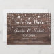 Dark wood as the background with illumination effect - lights dropping down from the top. The font is in white and the text is customizable. Change date, names, location and website (if available or use for other additional information or leave blank). Lights are uniquely designed and different from most other string light designs.