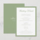 This Classic Sage Green Wedding Details Enclosure Card features elegant script typography framed by a timeless sage green border. The front presents your wedding details in a clean, formal layout, while the back is finished with a coordinating sage green design and personalized monogram. Perfect for formal, classic, or garden-inspired weddings, this enclosure card seamlessly complements a refined invitation suite.