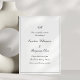 This wedding invitation features elegant script lettering with a timeless black and white layout and classic monogram initials at the top. The simple double border and refined typography create a formal look perfect for traditional ceremonies and black tie receptions. Ideal for couples planning an elegant evening wedding with dinner and dancing. A timeless choice for classic wedding stationery.