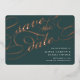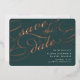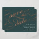 Elegant wedding save the date cards in rich forest green feature "save the date" in luxe rose gold foil script lettering for a bold and unforgettable look. Personalize with your wedding details in classic white lettering, and add additional information to the back.