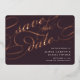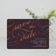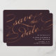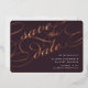 Elegant wedding save the date cards in rich dark plum feature "save the date" in luxe rose gold foil script lettering for a bold and unforgettable look. Personalize with your wedding details in classic white lettering, and add additional information to the back.