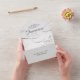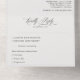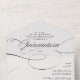 An elegant quinceañera invitation in off white and black, featuring a traditional wording with an elegant calligraphy typography header. This all-in-one sustainable invitation would save you money, no need to include RSVP envelopes, your guests will tear away the last panel and mail it back to you as a postcard.