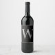 Classic Silver Grey Foil Monogram W on Black Wine Label