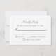 Simple and elegant, this classic wedding RSVP card has a thin silver-grey line border on front and back and text that may be edited as you wish. It blends beautiful script and timeless serif fonts in black on a white background for a look that is timeless and so very tasteful.