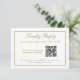 Simple and elegant, this wedding RSVP card has a thin gold line border on front and back and matching gold text that may be edited as you wish. It uses modern QR Code technology to allow you to provide a link to your wedding website for your guests to post their responses.