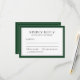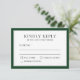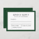 Une carte RSVP de mariage de bon goût avec simplicité classique, ce design comprend une bordure verte de forêt encadrant votre texte pour attirer l'attention sur vos détails RSVP affichés sur la carte. Vous pouvez ajouter, supprimer ou ajuster le placement du texte en fonction de vos besoins. Les tons vert et blanc de la forêt sont très bons pour les mariage en toute saison mais ils sont particulièrement agréables en automne et en hiver. Personnalisez le modèle de texte avec la date de réponse requise.