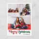 Classic Simple Merry Christmas Vertical 3 Photo Holiday Postcard