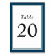 Classic and elegant, this table number card design has a double lined border in navy blue with a white background. The numbers are printed prominently on both sides of the card. To create a card for each of your tables, personalize the text for table one, then add to card. Then create the card for table 2 and add to cart. Repeat these steps for each table you will have at your wedding, banquet or event.
