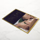 This is a classic and elegant wedding save the date card using a modern font in gold foil along with a single minimalistic photo with a gold frame border, also using real gold foil.