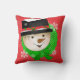 Classic Snowmen holiday pillow, so pretty and colourful, features a red with white small polka dots background with a green circle with white dots and each side has a smiling snowman with a hat, scarf, carrot nose, and snowflakes!