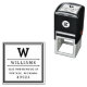 Classic return address design features a decorative square frame with custom monogram initial and surname. Personalize with your name and return address.