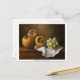Classic still life with persimmons and grape postc postcard