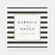 Classic stripe wedding faux gold foil napkin with a classic black and white stripe background. These elegant wedding napkins feature an elegant faux gold foil border framing your names and special date set in chic typography. Designed by Thisisnotme©