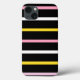 Classic stripes in pink, golden yellow and white colours against a black background.