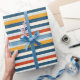 Classic Stripes Navy Blue Red Yellow Minimal Wrapping Paper