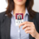 A professional Notary Public ID badge with a profile photo, logo and accreditation symbols. This editable template can be personalized with a name, credentials, and commission, along with certification marks or your company logo for branding. Additional information and a QR code can be included on the back. A classic blend of traditional and contemporary style, creating an elegant and friendly appearance, with fully customizable text to fit your business brand. Perfect for a Notary Public, Loan Signing Agent, Certified Notary Trust Delivery Agent (CNTDA), Mobile Notary, Apostille or other legal professional. Printed colours: dark burgundy, white and gold colour. Shop the online collection for more popular product ideas and supplies designed for notaries!