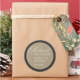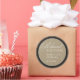Subtle pinstripes give a classic feel on this rehearsal dinner sticker. The couple's name and date of the event prints over taupe with thick black and rich brown borders. The word "Rehearsal Dinner" is rendered in both an ornate cursive and classic font and bleeds off the left side margin. Great sticker to use as envelope seals or on favours. Available in alternate colours.