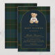 Classic Teddy Bear Green & Blue Plaid Baby Shower Invitation