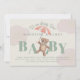 Original hand-drawn illustration of a teddy bear holding an umbrella with clouds; editable "BABY" letters, editable background colour on front and back. Add a QR code if desired to the backside for registry, website etc