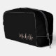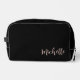 Elegant Black personalized cosmetic bag, with a soft rose gold and script typography design. A classic chic item to keep your cosmetics together.