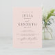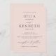 This classic wedding invitation with soft pink background, traditional wording, and modern black and white typography will always look fresh and chic. Feel free to edit it with your names and wedding date, place, and time. Matching reply and details cards, as well as day-of stationery, are also available.