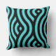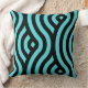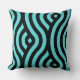 Classic Turquoise and Black Striped Wave Pattern Throw Pillow