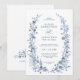 This elegant botanical winter wedding invitation features soft dusty blue florals arranged in a delicate wreath, creating a timeless and romantic look. Inspired by vintage botanical illustrations and icy winter tones, this classic design is perfect for winter weddings, formal celebrations, and elegant seasonal ceremonies. The refined typography pairs beautifully with the cool blue palette, making it ideal for traditional, garden-inspired, or vintage winter weddings. Easily personalize with your wedding details for a polished and sophisticated invitation your guests will love.