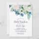 This classic white flowers bridal luncheon invitation is perfect for a spring wedding shower. The elegant floral design features soft ivory and white roses, peonies, and chrysanthemum with touches of periwinkle blue watercolor flowers and green foliage.