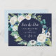 Classic White Flowers Navy Save the Date Postcard