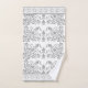 Beautiful towel set in classic white background with soft grey flourishes. Perfect for gifting, guest baths and more.
