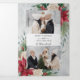 This classic and traditional design features two photo templates with centre blank element for your personalization on a background of watercolor style poinsettias, white roses and pine on a misty grey background. The panels features an additional three photo templates as well as editable text fields on a complementary grey watercolor background.
