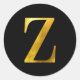 Classic Yellow Gold Foil Monogram Z on Black Round Sticker