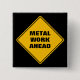 Funny classic yellow diamond caution road sign warns of metal work ahead in a thick black sans serif font, which is a warning sign for the road work sign that will be coming up next. Perfect gift for an ironmonger, metal worker, heavy metal musician.