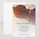 Set a musical tone for your upcoming nuptials with the elegant Classical Violin and White Roses Wedding Save the Date Announcement. This classy custom orchestra theme wedding keep the date announcement features a floral photograph of a brown wooden violin, three white roses with a diamond engagement ring and wedding band set with a blurred sheet music background. Perfect for a couple of musicians or violinists.