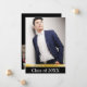 Célébrez votre diplômé avec ce classique et simple faire-part de graduation en trois photos. L'image verticale avec typographie simple est parfaite pour montrer des photos seniors. Le type comprend beaucoup de place pour le nom, l'école et la "classe de" année, qui correspond au dos de la carte. La couleur noire peut être ajustée à n'importe quelle couleur de l'école en cliquant sur "Customiser plus loin".