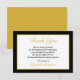 Cette carte de remerciement de sympathie simple, mais élégante, présente une bordure noire et or avec le verset de remerciement apparaissant sur un fond blanc. Les mots "Merci" et le nom de votre proche apparaissent en or. Le dos de la carte de remerciement de sympathie plate comporte également cette belle couleur dorée. Le design est une façon charmante de dire merci pour votre sympathie. Copyright sympathythankyou