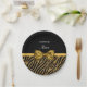 Your teenage girl will feel immersed in girly luxury with these chic designer gold and black glitter-like zebra print paper plates with a sequin sparkle ribbon tied into a luxe bow. Personalize this glitz and glam animal print fashion design by adding her name. Flat printed image, NOT actual glitter or ribbon.