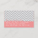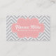 Classy and Elegant, grey and white chevron pattern background. Pink Bracket frame with stitch effects for indicating details. This striking business card with its pastel colours is ideal for anyone who is looking for a memorable yet professional business card design. Design is suitable for the ladies. Other colour combinations available. Design can be easily customised to your details. Designed by Rusty Doodle.