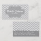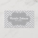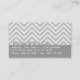 Classy and Elegant, grey and white chevron pattern background. Bracket frame with stitch effects for indicating details. This striking business card with its simple colours is ideal for anyone who is looking for a memorable yet professional business card design. Design is suitable for the ladies. Baby Blue and pink versions available. Design can be easily customised to your details. Designed by Rusty Doodle.