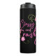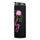 Stylish thermal tumbler for women livin' the country life loud! Design features "Classy & Trashy" pink script text with pink roses on black background.