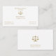 Lawyer business cards in a stylish, elegant template design with scales of justice logo symbol.