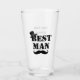 Best Man glass with top hat and moustache motif and stencil lettering. Great for stag nights and wedding receptions. Personalised with name and date on back.