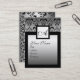 CLASSY BLACK AND SILVER DAMASK SQUARE MONOGRAM BUSINESS CARD