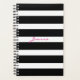 Classy black and white geometric stripes pattern. Hot pink stripe on back