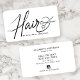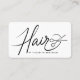 This business card features the word "Hair" in an elegant script font with a pair of scissors against a white background. Perfect for hairstylists or salons. You can change the text or background to whatever colour you wish.
