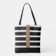 A black and white striped monogrammed tote. This can be used for the beach or shopping. Classy black and white with taupe coloured stripe. The monogram stands out. Great for mother's day or birthday gift too!
